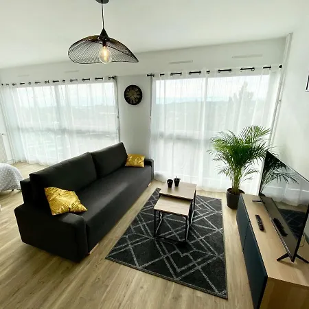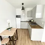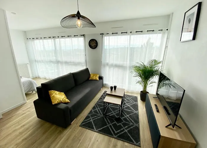 Facing the garden, L'Industriel Chic, 2 Pieces Avec Vu Imprenable Sur Rouen Apartment comprises a dressing area furnished with a writing table. The property also includes media amenities such as a multi-channel TV, allowing guests to unwind at their leisure. Visitors will enjoy the comfort of a bathroom with a dryer, complimentary toiletries, and bath sheets in this accommodation. Furthermore, a bath is available.